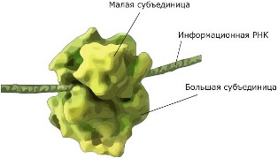 Рибосома состоит из двух субъединиц – большой и малой. В свою очередь, каждая субъединица это рРНК (рибосомальная РНК) и белки.
