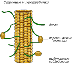 Микротрубочки собираются в клеточном центре из белка тубулина. Эти полые структуры пронизывают всю цитоплазму, не давая клетке слишком сильно сжаться или растянуться. Транспортную функцию выполняют именно микротрубочки, они же тубулиновые нити. Они полярны, поэтому во время деления клетки микротрубочки прикрепляются к хромосомам в определенном участке белковой природы – кинетохоре, а далее, в анафазе, хромосомы расходятся к полюсам клетки. Не все микротрубочки присоединяются к хромосомам, некоторые остаются без ничего. Благодаря полярности тубулиновые нити не присоединяются друг к другу.