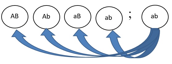 Следующей строкой идут гаметы, обозначаются «G:» и перечисляются гаметы каждого из родителей.
