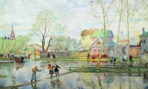 Главный образ стихотворения – пейзаж. Наступающая весна будоражит воображение поэта, его меткая фраза «бледно пишет акварели весна» создает ощущение причастности к происходящему в природе обновлению. Возникает чувство, что автор точными акварельными мазками делает наброски великолепной картины, рождающейся на глазах у читателя.