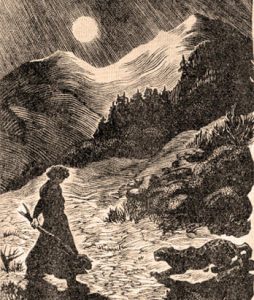 Настала ночь. Мцыри снится молодая грузинка. Проснувшись, он видит огонек в ее сакле. Душа его звала войти внутрь, но он не решился на это. Он отправляется в поисках родной земли, но постепенно сбивается с пути, оказавшись в лесу.