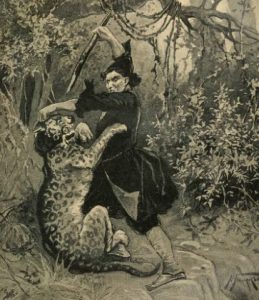 Впервые в жизни Мцыри заплакал. Неожиданно перед ним возникает дикий барс, молодой человек готовится к бою.