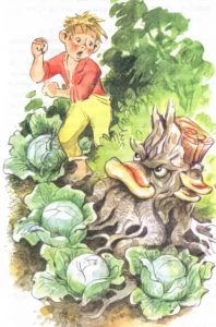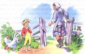 Нередко фантазии Никиты страшили его. Однажды он так испугался, что громко стал звать маму, но она была на работе и не слышала его. Все, что окружало Никиту, злобно ухмылялось и ненавидело его. Даже из-под земли ему чудилась опасность. Не выдержав такого натиска злобы, мальчик быстро собрался и побежал к маме на работу. Устав по дороге, он прислонился к плетню и заснул.