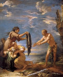 Одиссей продолжает рассказывать, как он и его люди добрались до острова Эола, царя, которому боги поручили властвовать над ветрами. Эол дает Одиссею сумку, наполненную ветрами, которые должны помочь ему вернуться домой. Однако люди Одиссея решили, что в сумке находятся сокровища.