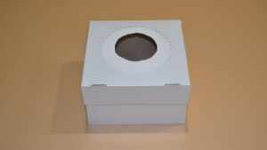 1. Возьмите небольшую пустую коробку и сделайте в ней отверстие (сверху) с помощью ножниц. Отлично подойдёт коробка из-под обуви.