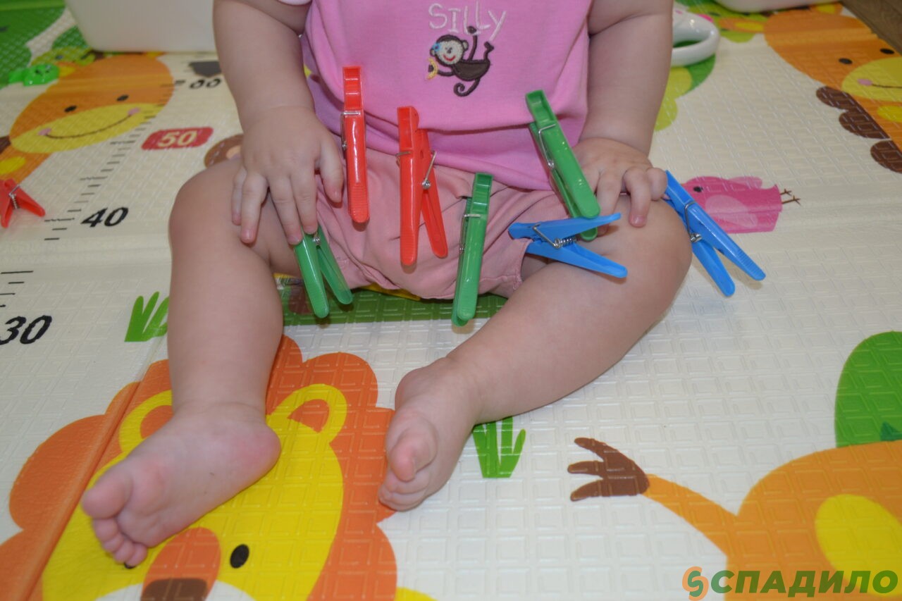 Не забывайте радоваться каждой прищепке, которую снимает кроха. Обязательно хвалите малыша.