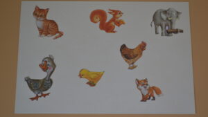 1. Возьмите белый картон и наклейте на него 5–7 небольших изображений животных.