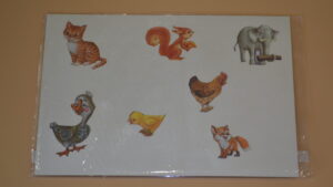 Материалы для упражнения: белый картон, клей, файл для бумаги, гречневая крупа, картинки/наклейки животных, скотч