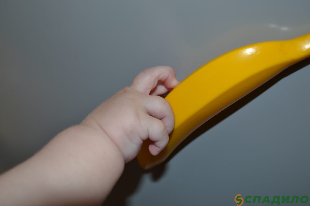 Не забывайте комментировать свои действия. Обязательно называйте то, что вы кладёте в корзинку: «Это банан. Банан жёлтый и вкусный», «Это мячик. Мячик зелёный». Ребёнок с удовольствием будет вам помогать.