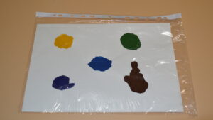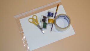 Материалы для упражнения: гуашь, кисточка, лист белого картона, файл для бумаги, скотч, ножницы