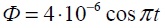 Проволочная рамка площадью 2×10–3 м2 вращается в однородном магнитном поле вокруг оси, перпендикулярной вектору магнитной индукции. Магнитный поток, пронизывающий площадь рамки, изменяется по закону Ф=4×10–6cos10πt, где все величины выражены в СИ. Чему равен модуль магнитной индукции? Ответ выразите в мТл.