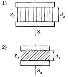 Чтобы на опыте обнаружить зависимость ёмкости конденсатора от расстояния между его обкладками, нужно сохранить все величины постоянными, кроме самого расстояния. Поэтому площади обкладок должны быть одинаковыми, но расстояние между ними разными, как на рисунке 1.