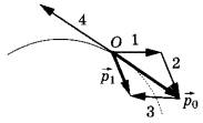 Снаряд, имеющий в точке О траектории импульсp0, разорвался на два осколка. Один из осколков имеет импульс −p1